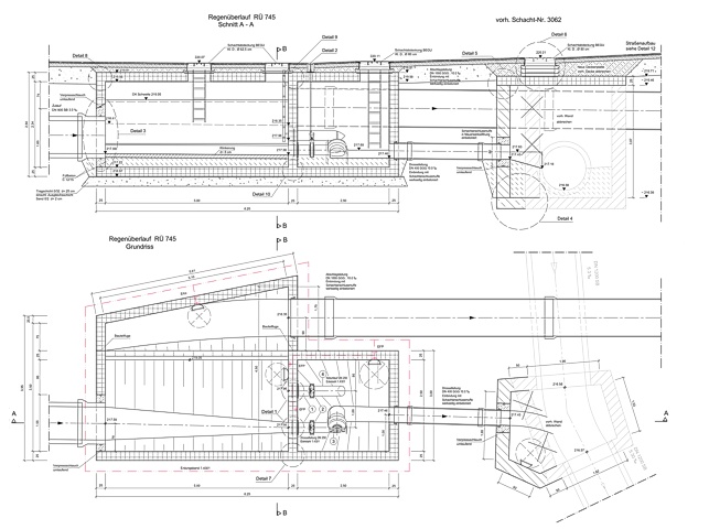 • Bestandsplanerstellung der vorhandenen Regenüberlaufbauwerke